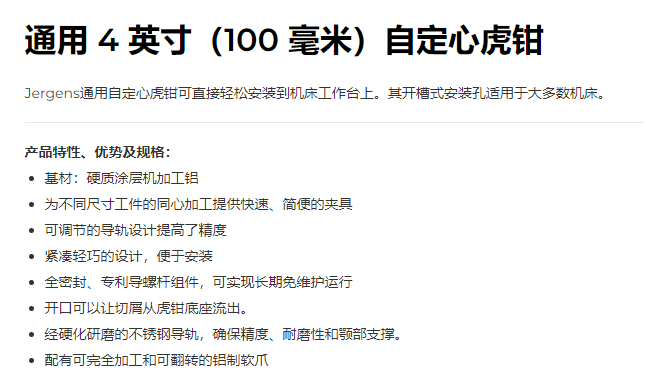Jergens 通用 4 英寸(100 毫米)自定心虎钳系列