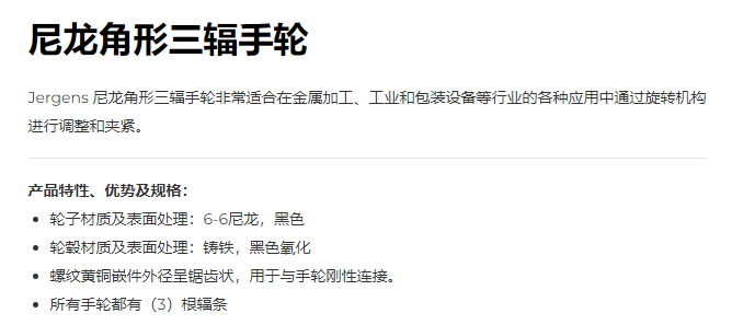 Jergens 尼龙角形三辐手轮系列