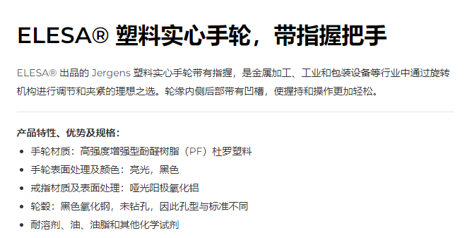 Jergens 塑料实心手轮,带指握把手系列
